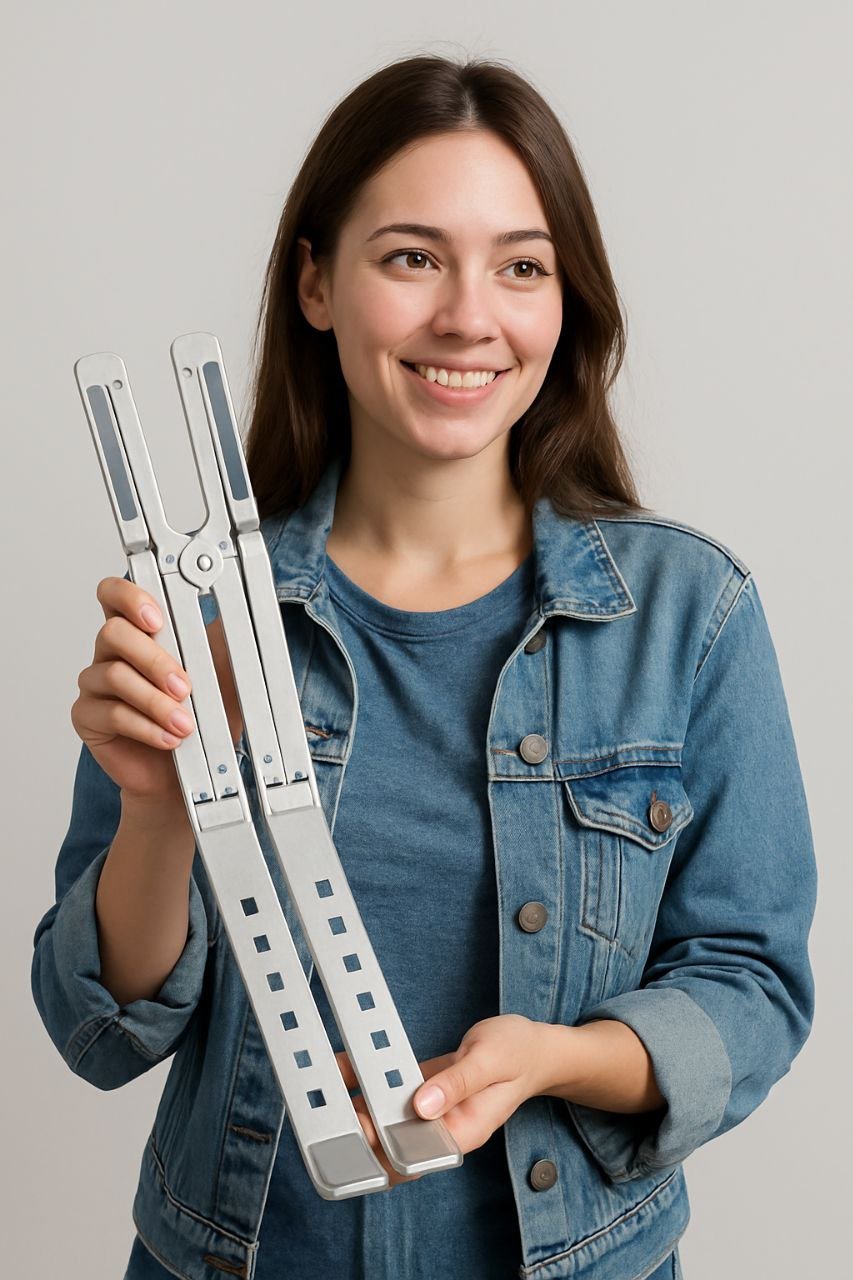 The Foldable Adjustable Laptop Stand is a lightweight yet durable solution designed for comfortable laptop use. With 7-level height adjustment, it helps reduce neck strain and improve posture. Built from sturdy aluminum alloy, it’s portable, foldable, and suitable for laptops, tablets, and books.